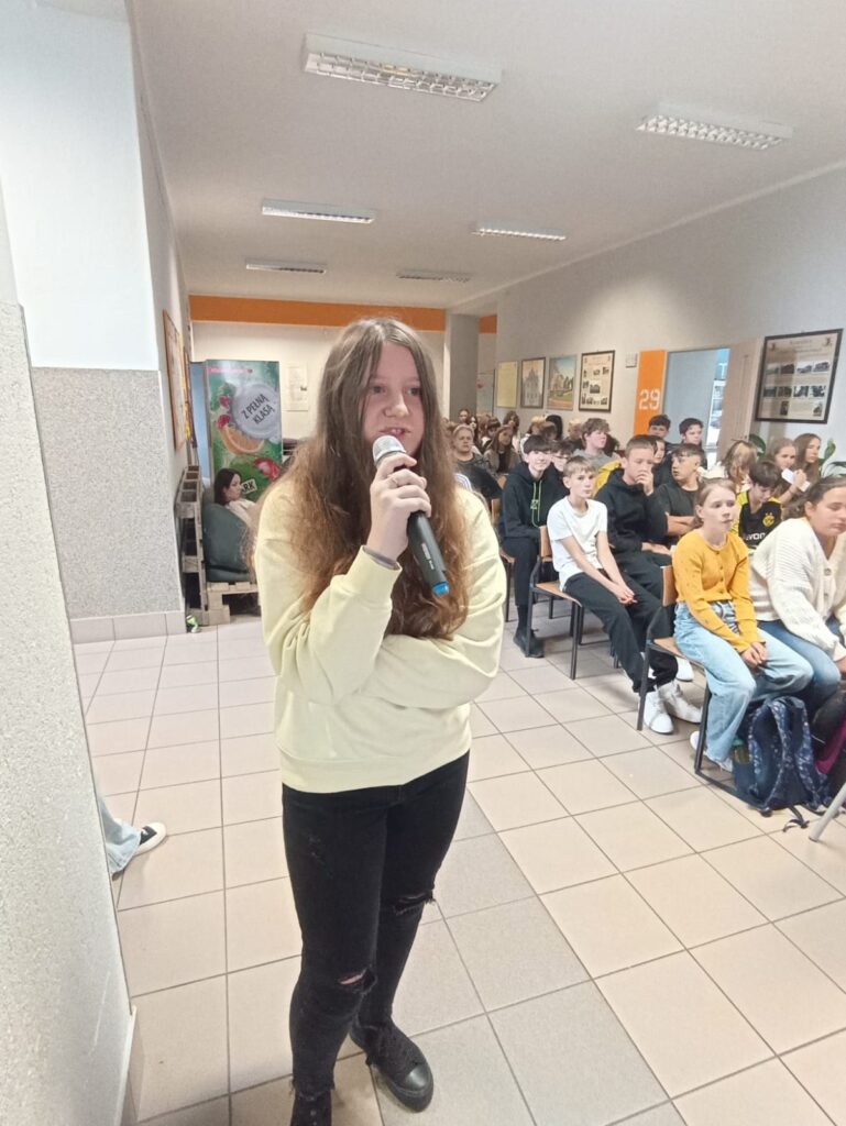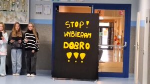 W ramach Tygodnia Przeciwdziałania Przemocy Rówieśniczej 1 października uczniowie klasy 8 przygotowali wyjątkowe przedstawienie dla klas 1–3 pod tytułem „Stop! Wybieram Dobro!”.