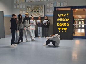 🎭 „Stop! Wybieram Dobro!” – scenki profilaktyczne w wykonaniu klasy 8 🤝