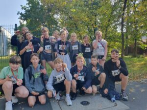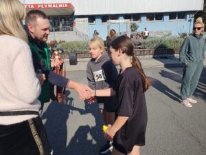 Nasze uczennice i uczniowie z ogromnym entuzjazmem pokonywali kolejne etapy trasy, wykazując się nie tylko sprawnością fizyczną, ale też wzajemnym wsparciem i sportowym duchem. Każdy uczestnik dzielnie przebiegł dystans 1700 metrów, co zasługuje na ogromne brawa i uznanie!